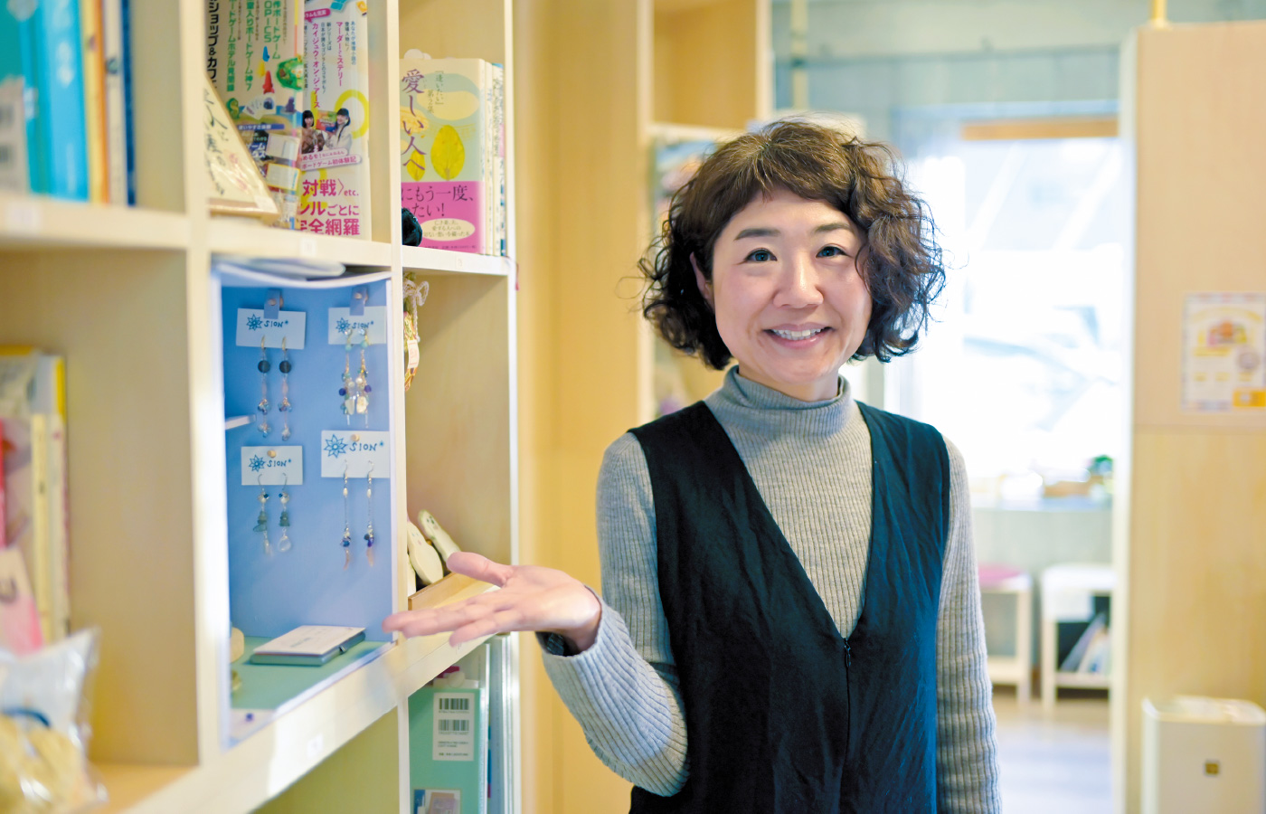 シェア型書店は本棚ごとに「棚オーナー」と呼ばれる店主がいて、使用料を払うことで自らが好きな本を販売できる形式。月に数千円という低価格で、誰もが本屋になれるという魅力から、近年全国に増えつつある新たな書店の形です。小川さんはここに本だけでなく、ハンドメイドのアクセサリーやクラフトといった作品も置ける形を作ることにしました。