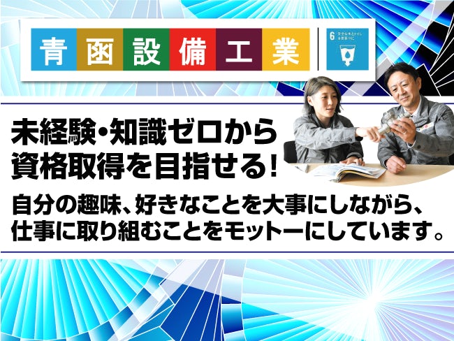 | [仕事内容] | 当社は、函館エリアで60年の歴史を持つ総合設備工事会社です。 空調・給排水衛生・消防設備など、建物のインフラを支える大切な仕事を手掛けています。 人々の暮らしに直結し、街の安心・安全を創り出す、やりがいのある仕事です。 はじめはアシスタントとして先輩社員と同行しながら仕事の流れを覚えていただきます。 まずは現場の片付けやまわりのサポートなど簡単なことから徐々にお任せします。 |