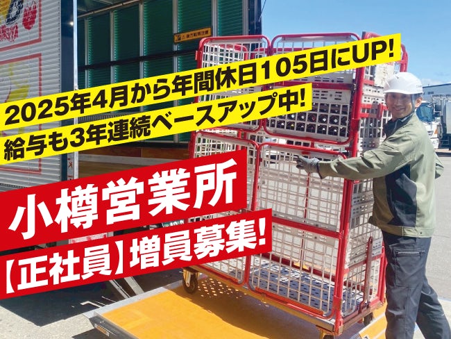 全道14事業所全てで自動車運送事業者の「働きやすい職場認証制度」の認証を受けました。4月から年間休日数を105日にUPする等、更なる働きやすい職場を目指しています。1人1人の負担軽減を図る目的での増員募集です。