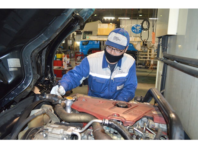メーカーを限定せず、色々な車種を扱います。2t〜10tトラック、バス、フォークリフトなど。さまざまな車両を扱いますが、どれも構造は同じなので知識があれば大きな違いはありません。