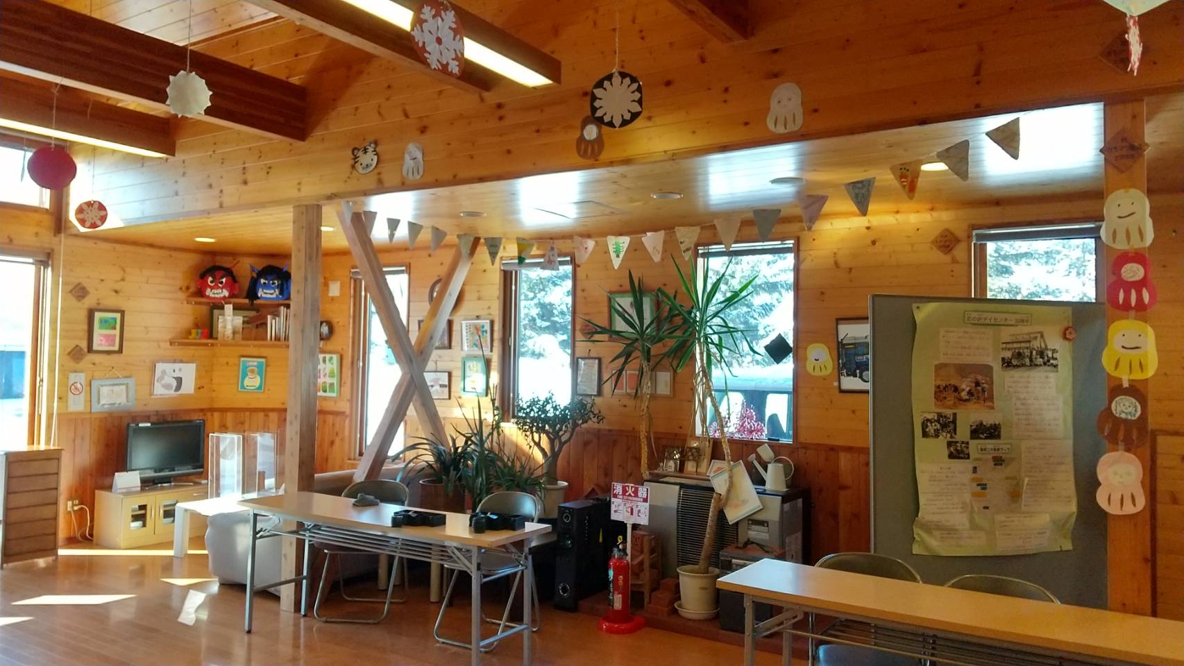 北の沢デイセンターは、外観も内観もペンションのような作り。木の暖かみを感じる明るく爽やかな気持ちで過ごせる施設なんです。