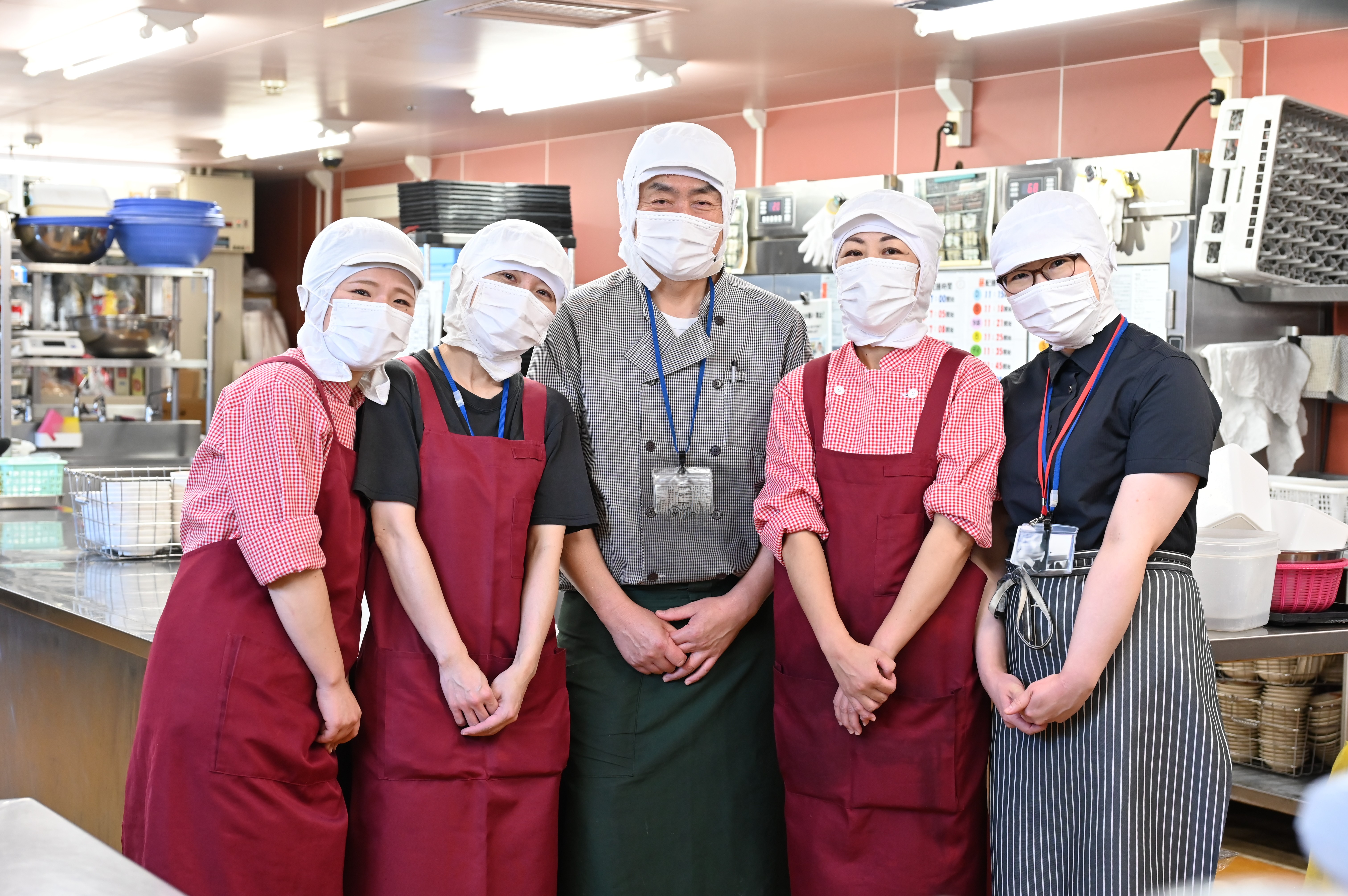 スタッフは20〜70代まで、幅広い年齢層が活躍中です。前職は事務・保育士・介護など、経歴は様々。普段の家事の延長線上で取り組める仕事内容のため、調理のお仕事が未経験だった方も多く在籍しています。