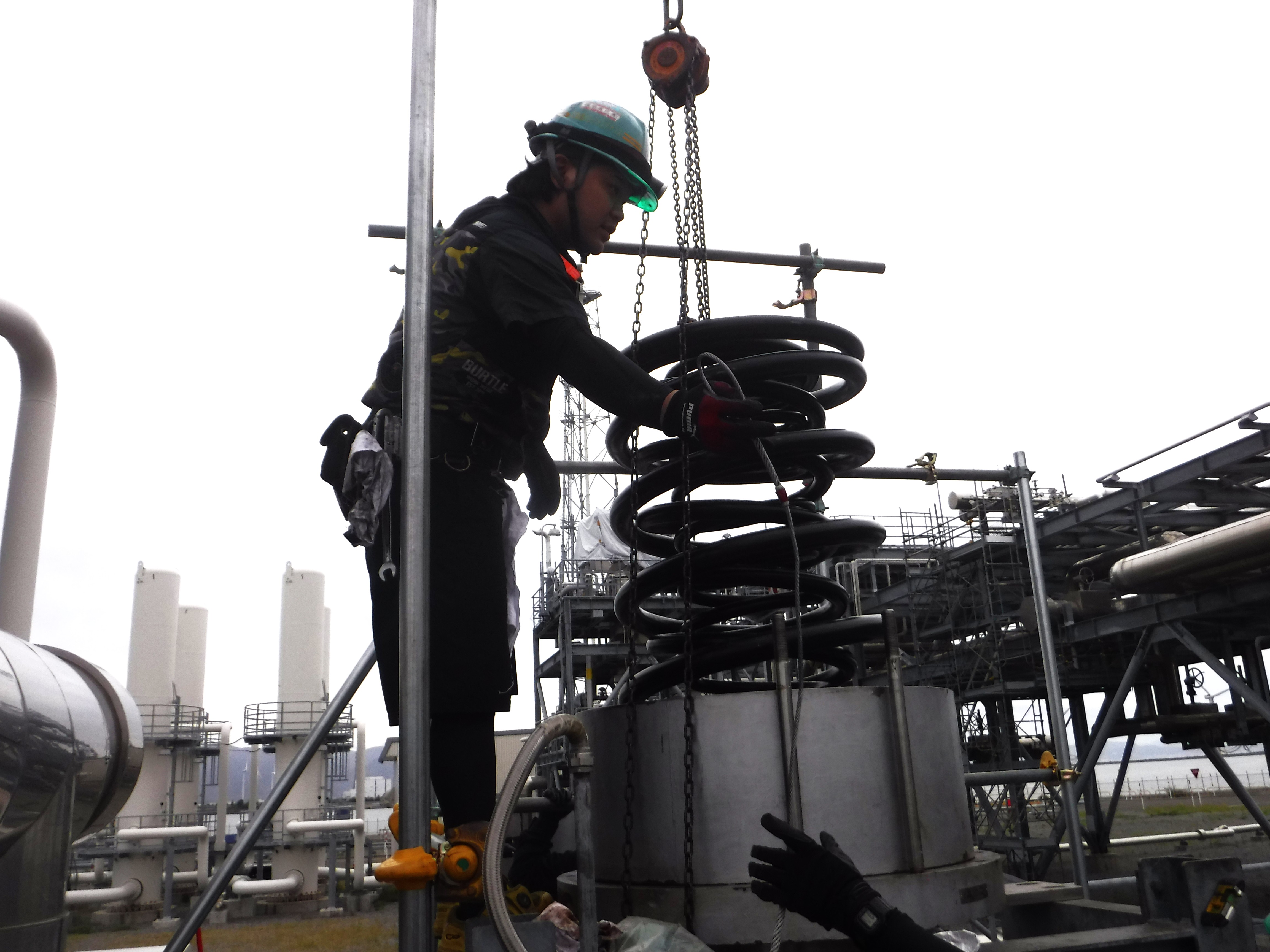発電所の設備が確実に滞りなく稼働できるよう、発電所の弁点検工事を行っています。