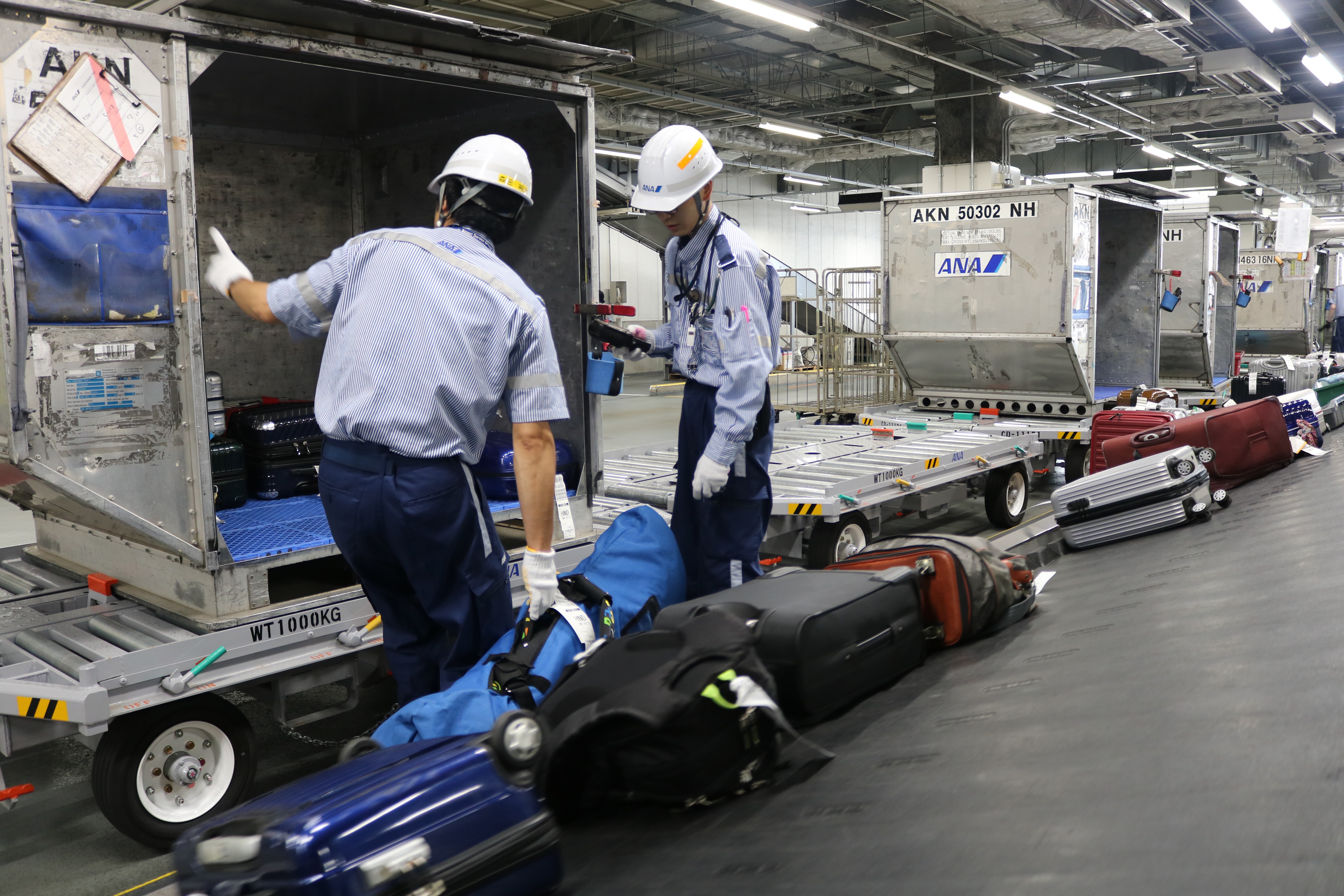 手荷物を仕分けしたり、航空機内に積み込んだりする、