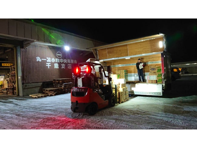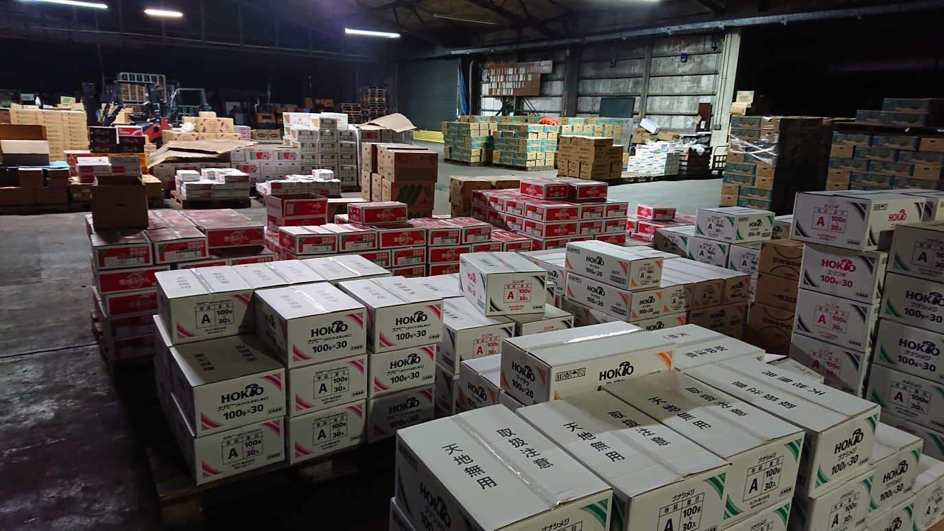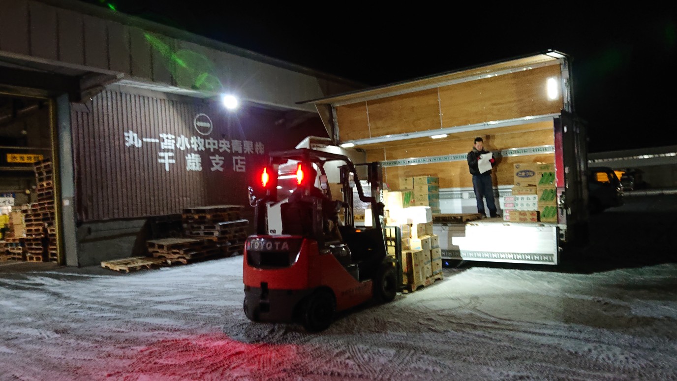 当社は千歳市公設地方卸売市場内で、農家さんや農協から出荷される青果物を、苫小牧をはじめ全国のスーパーや八百屋、仲卸業者へ販売する卸売業者です。