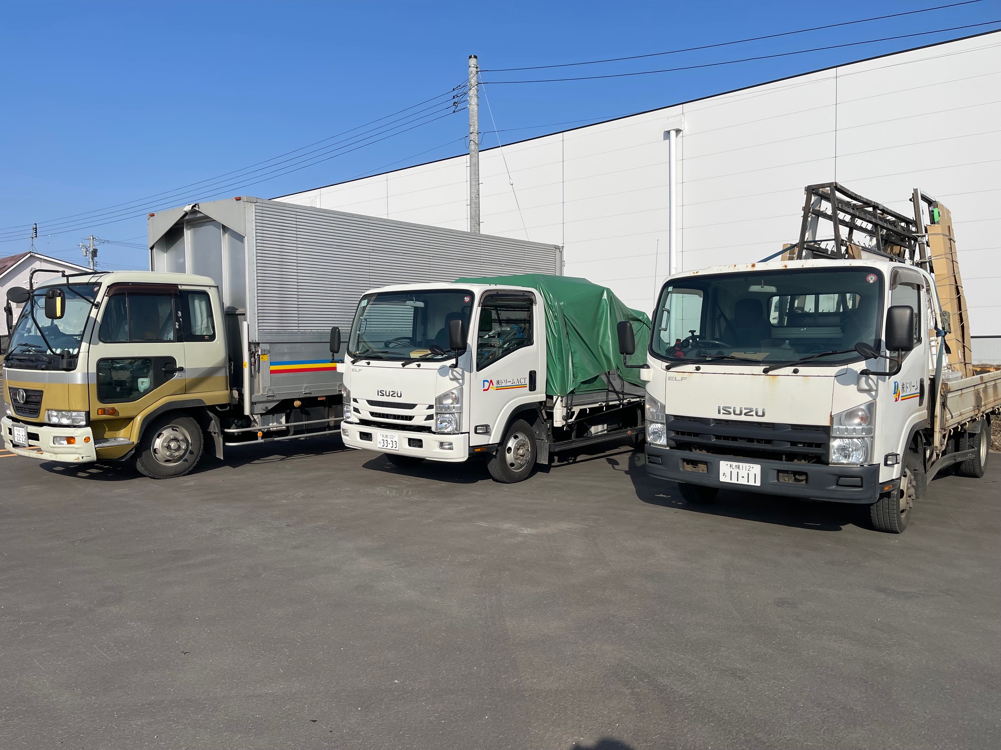 現場で取り付けの作業をする時間より、車を運転しての移動時間が長いです。車は2tと4tのトラックです。 運転に自信が無い方も最初は助手席に乗って、慣れてからでOK。無理はさせませんのでご安心下さい。