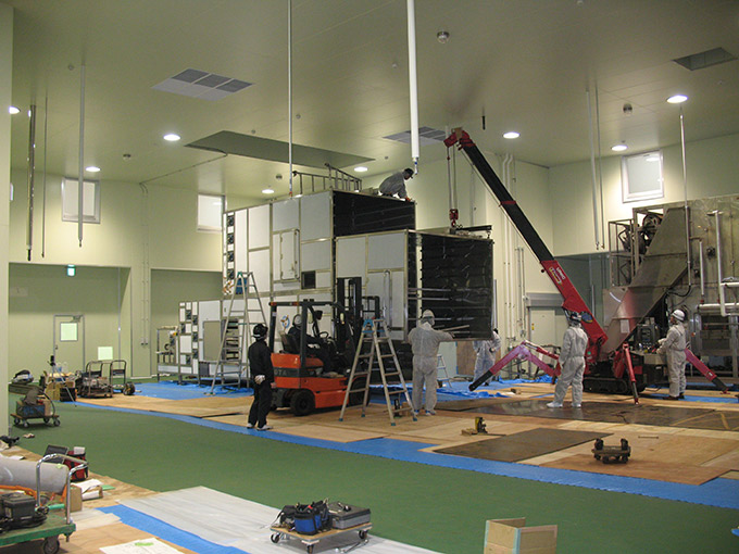 当社が行っている作業風景です。重量物及び機器の搬入・据付業務を主業務とし、主業務に関連する機器輸送業務も兼ねています。