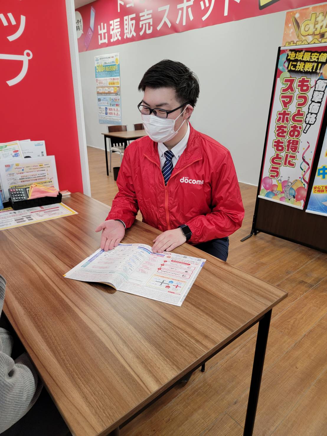 家電店のドコモコーナーにてスマホ受付やご案内業務を担当します。
