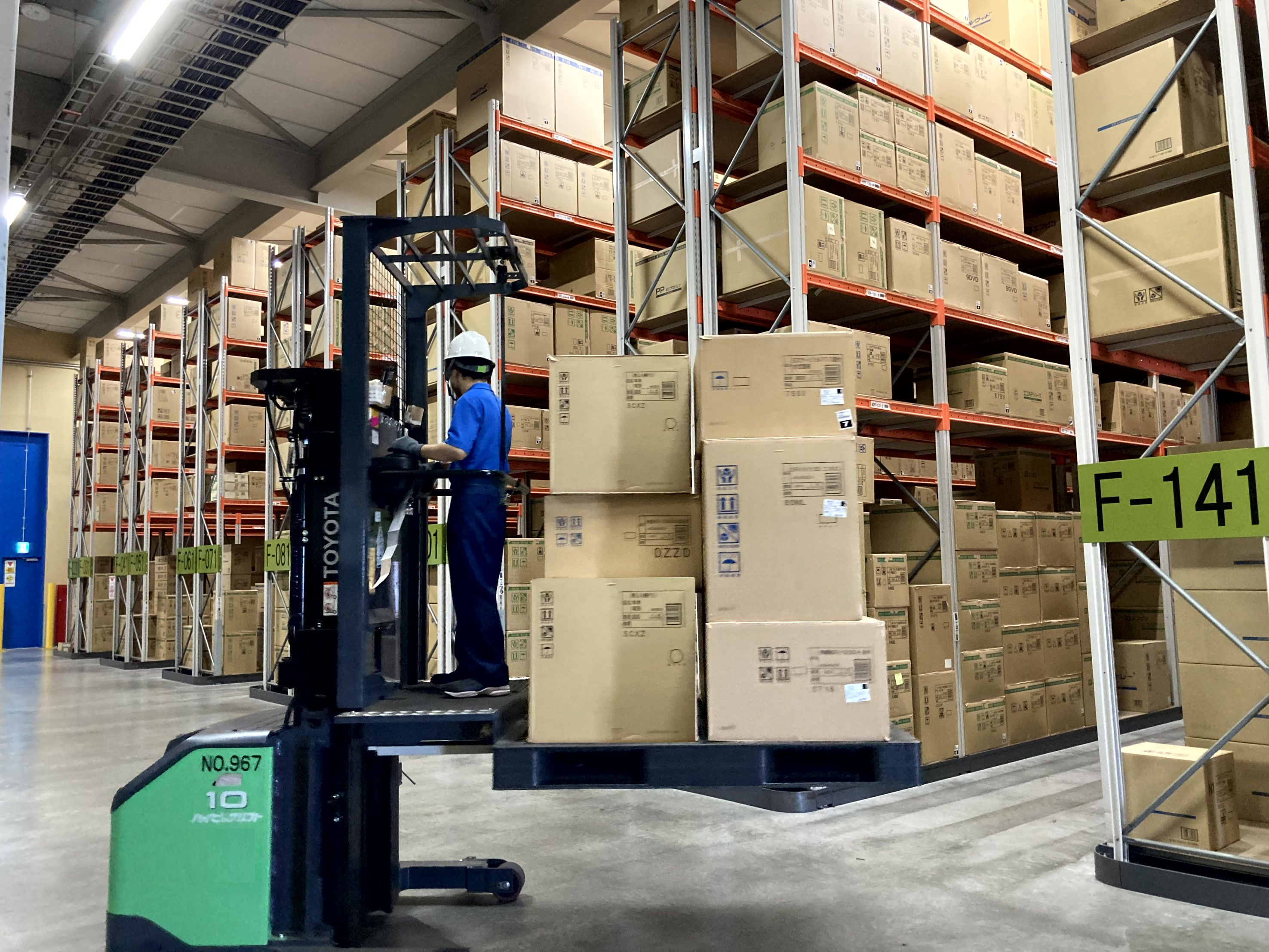 フォークリフトでの運搬や商品の積込みなどダイナミックな作業が中心。