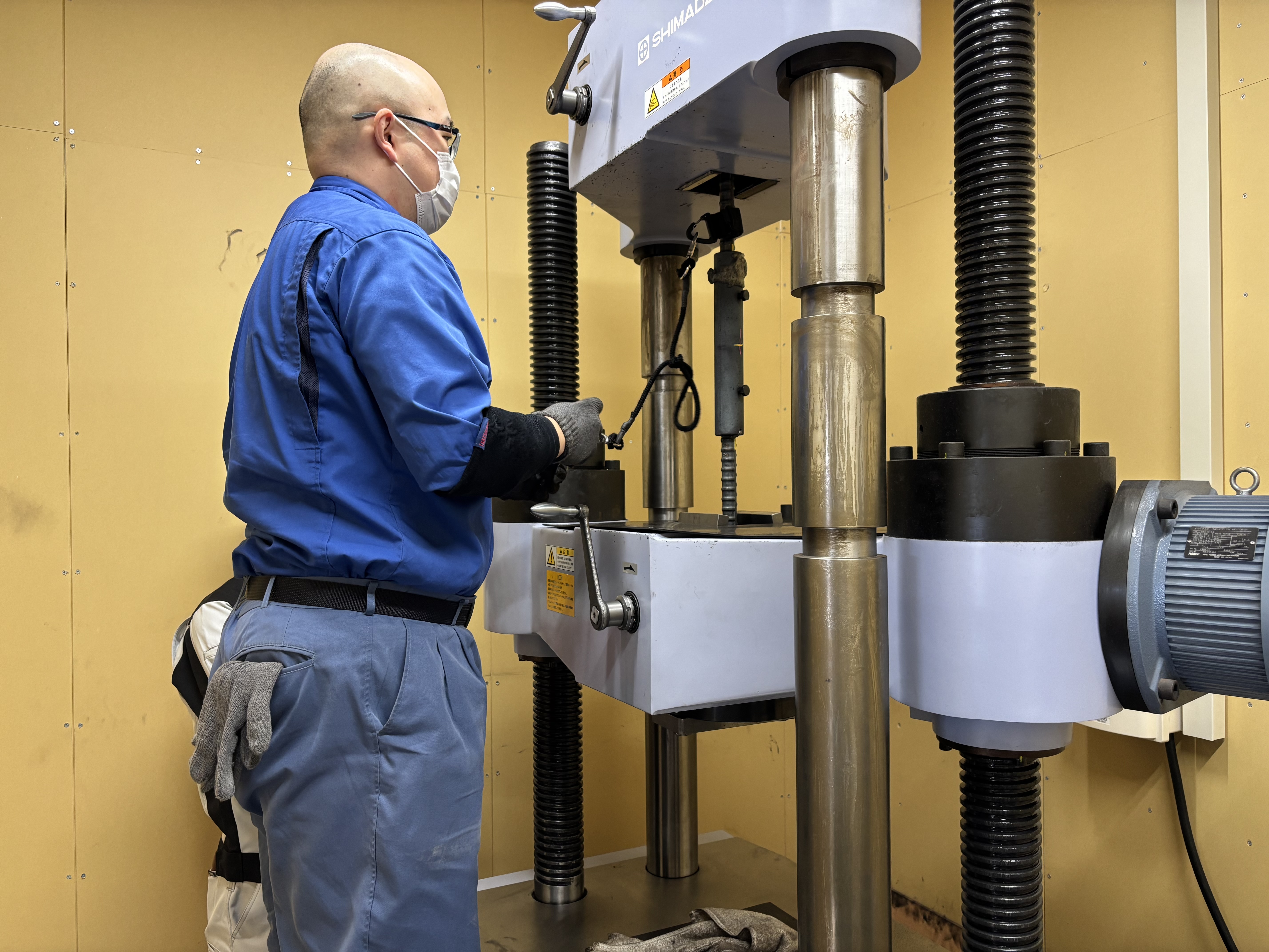 試験は簡単なパソコン操作とテストピースを正しくセットし試験結果を記録に残すことが主な業務です。