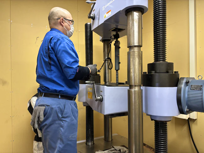 具体的には、専用の試験機でコンクリートを圧縮し、設計通りの強度かを確認します。基準に届かなければ、残念ながら「不合格」になることも…