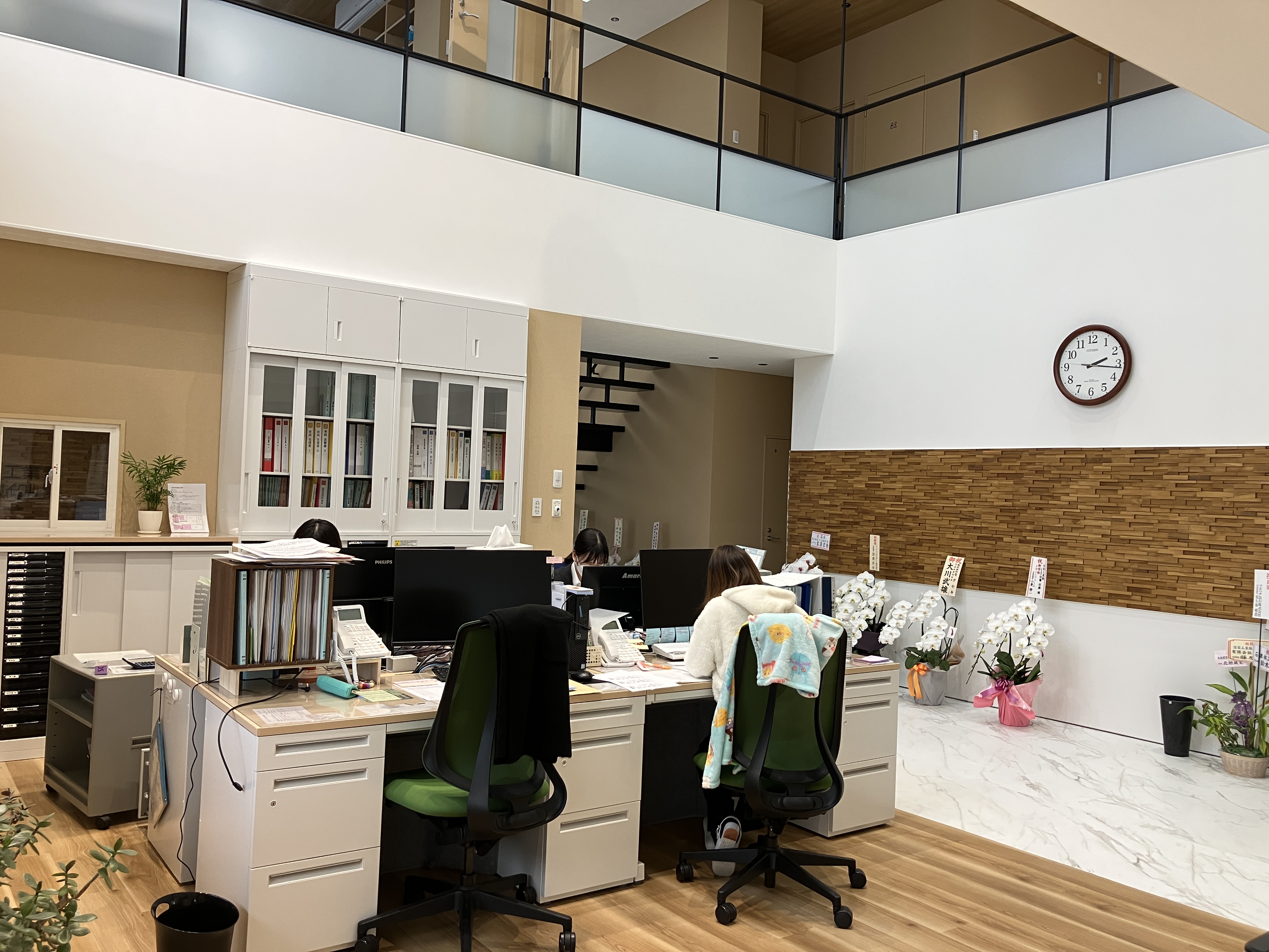 2023年11月に移転した新しい社屋です。吹き抜けになっており開放感を感じられ、気持ちよく働けます♪。女性専用の更衣室も完備です。