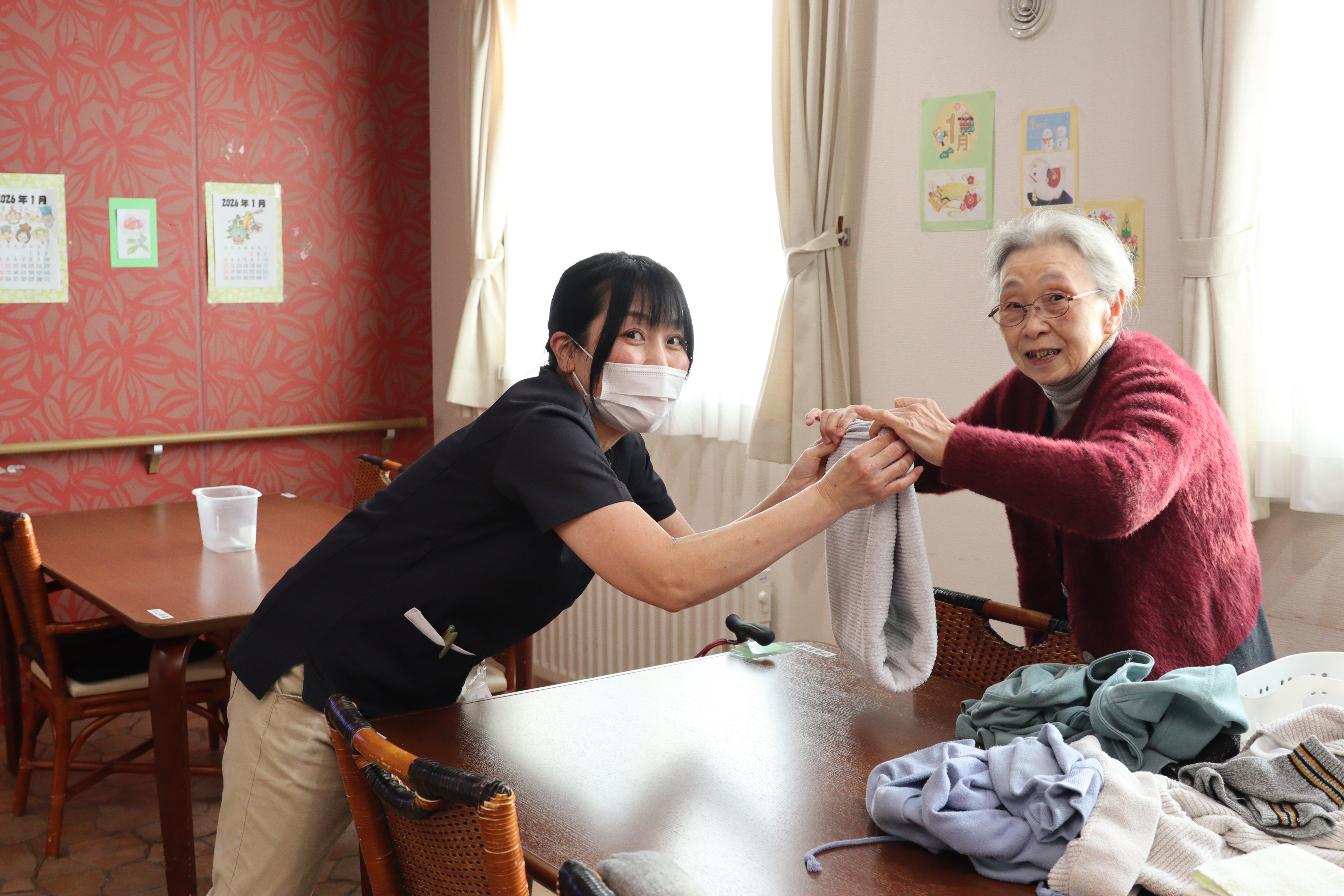 和気あいあいとスタッフと一緒に楽しい時間を過ごしています。