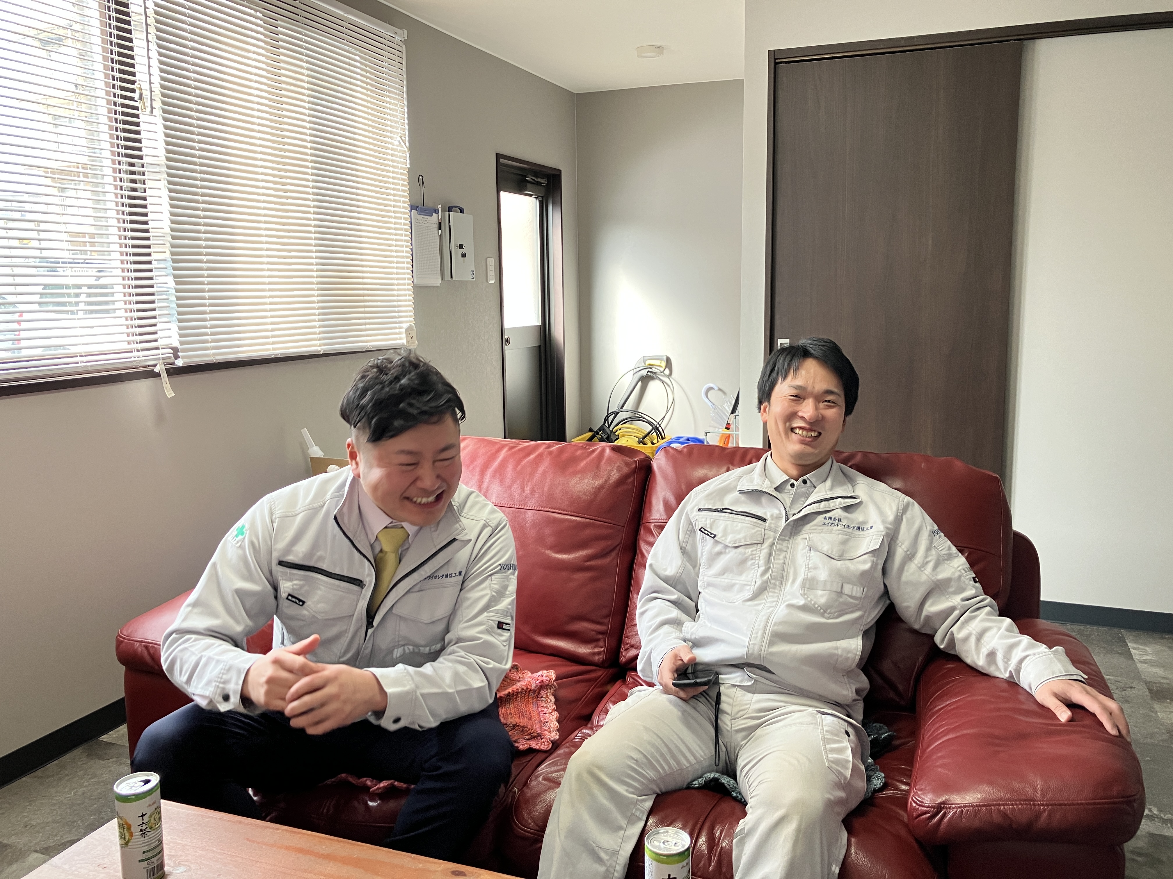 取材時のオフショット。経理事務の野村さんから社長に「私の良いところは?」と聞かれ、なぜか嬉しそうな社長 笑。