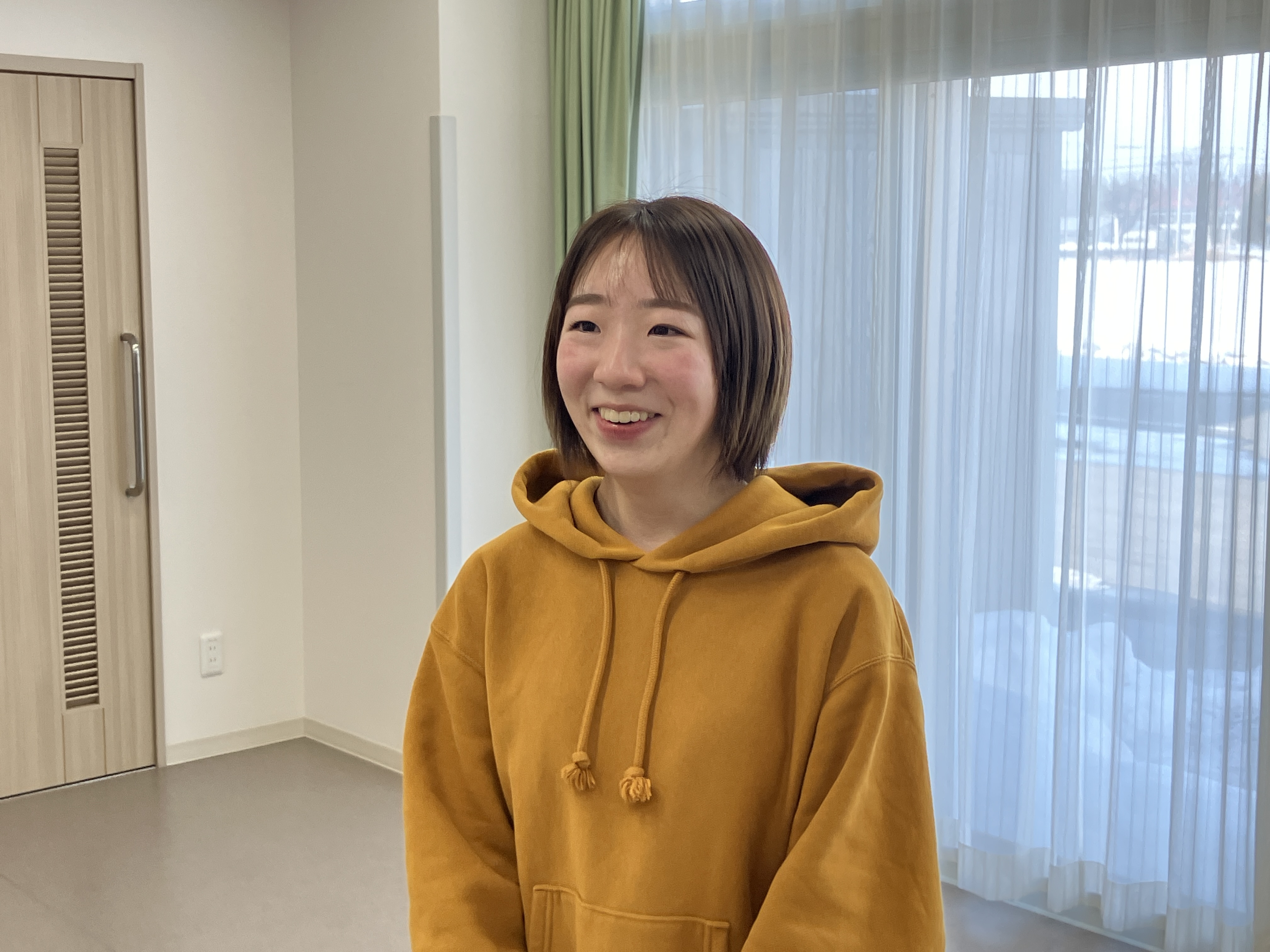 短大の社会福祉科を卒業後、新卒で入職しました。当初は高齢者介護と障がい者支援の二択で迷っていましたが、音更晩成園で実習した際に利用者様一人ひとりが自分の好きなことを楽しんでいる姿が印象的だったのが就職の決め手の一つです。