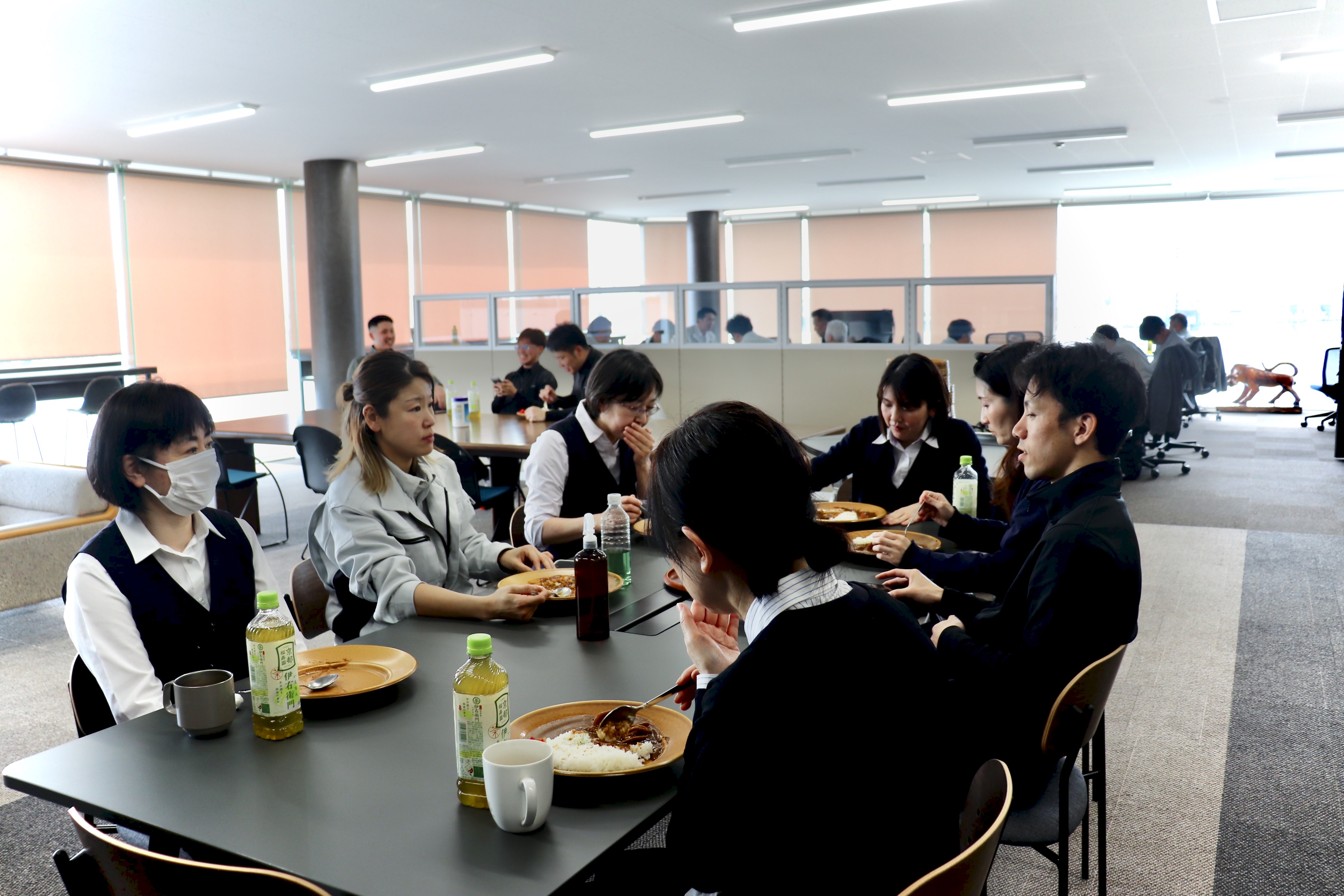取材にお邪魔した日は、社内研修日…!有名店のカレーを食べながら、にぎやかな雰囲気でお昼休憩している一コマがこちら。研修のときはいつも美味しいランチが用意されるそうです!