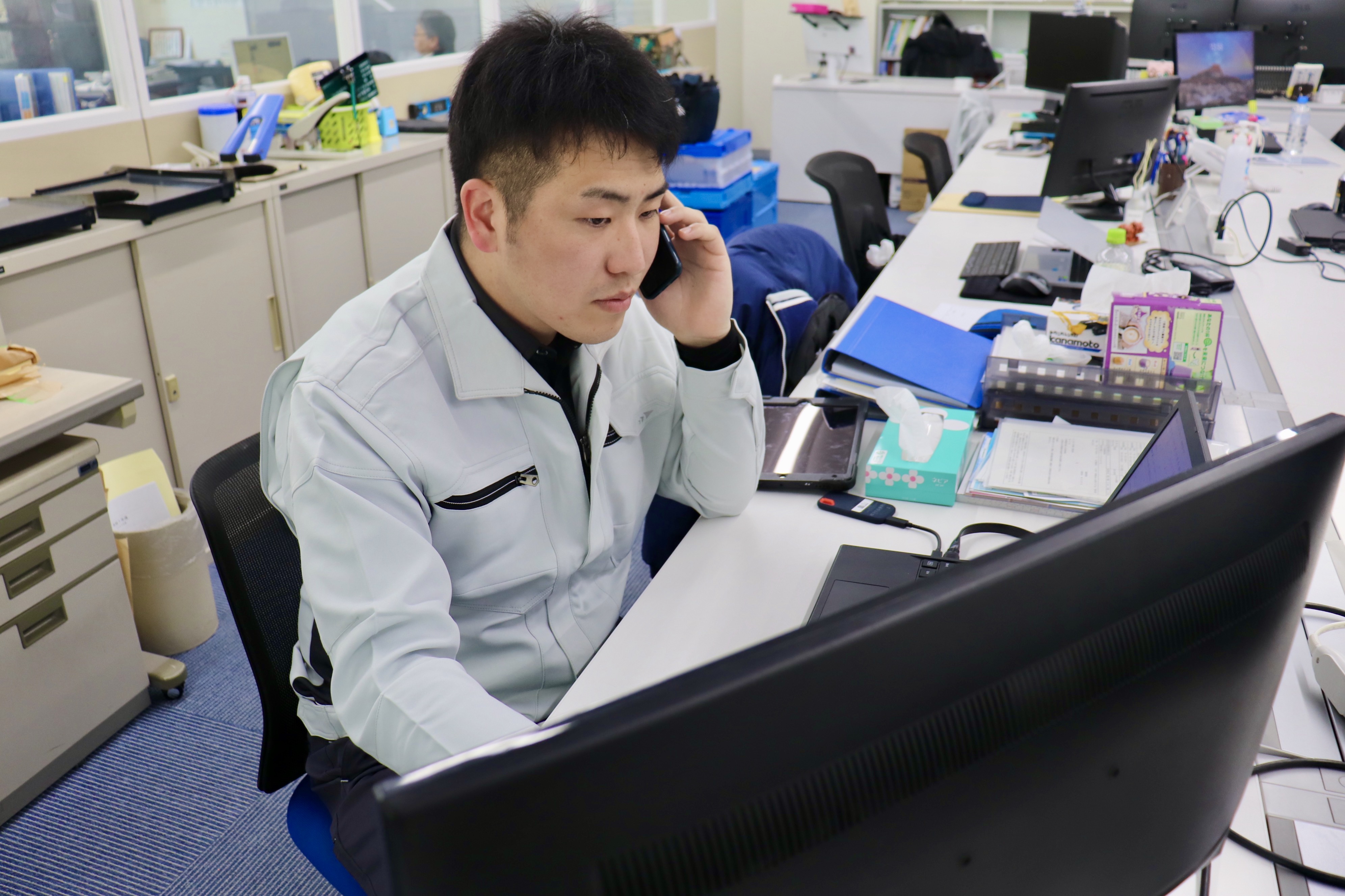 募集している工事部のお仕事はもちろん現場に出ることも多いのですが、現場がスムーズに進むために図面を見ながらスケジュールを組むなどのオフィスワークもあります!メリハリのあるお仕事ですよ◎