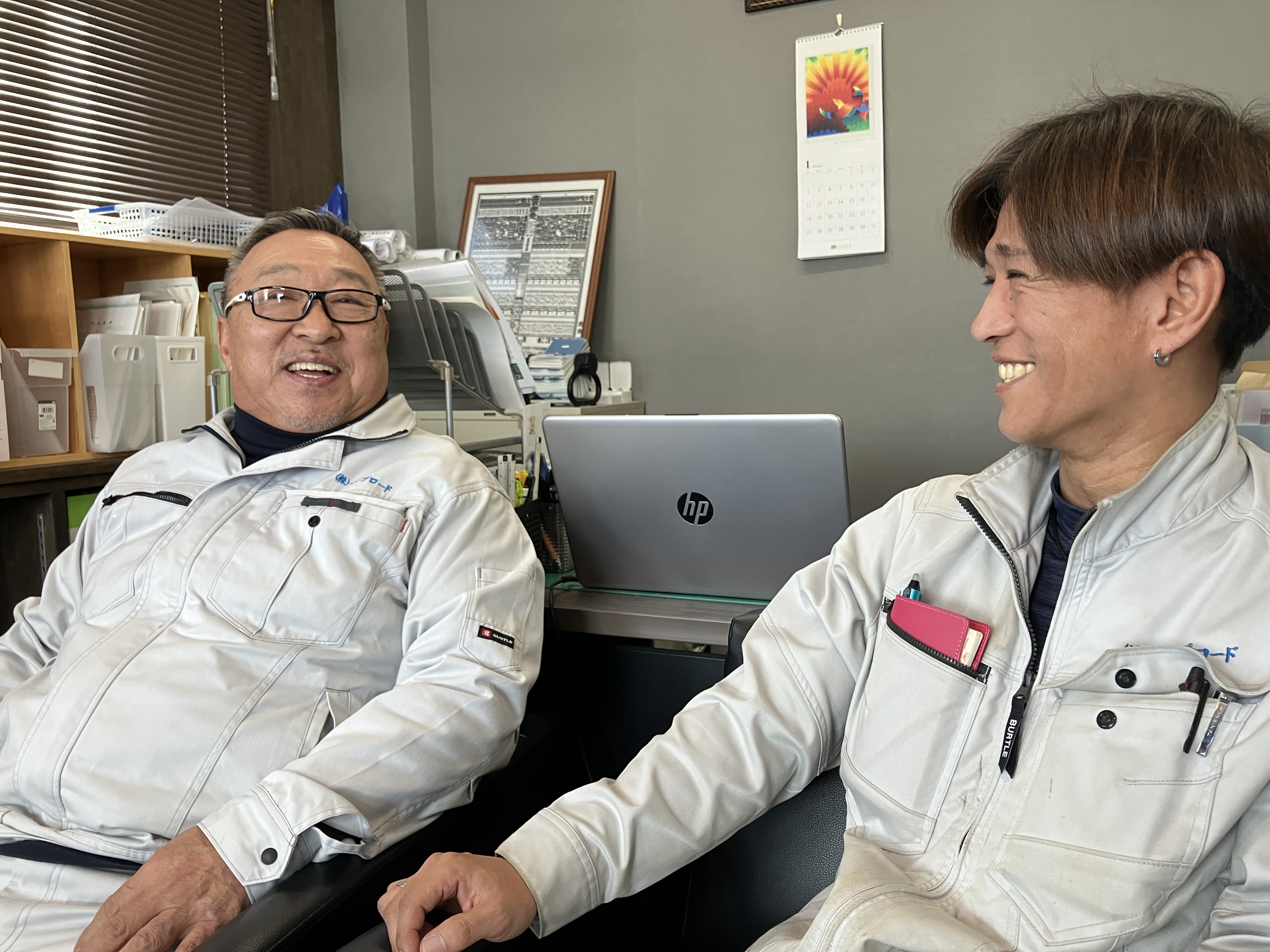 利益が出たらとことん社員に還元するのが私の考え。昇給や賞与で応えるのはもちろんのこと、退職金制度やiDeCo、他にも病気やケガの際の保険や生命保険も全て会社負担ですので、これから家庭を持ちたいという方にも安心の環境です。