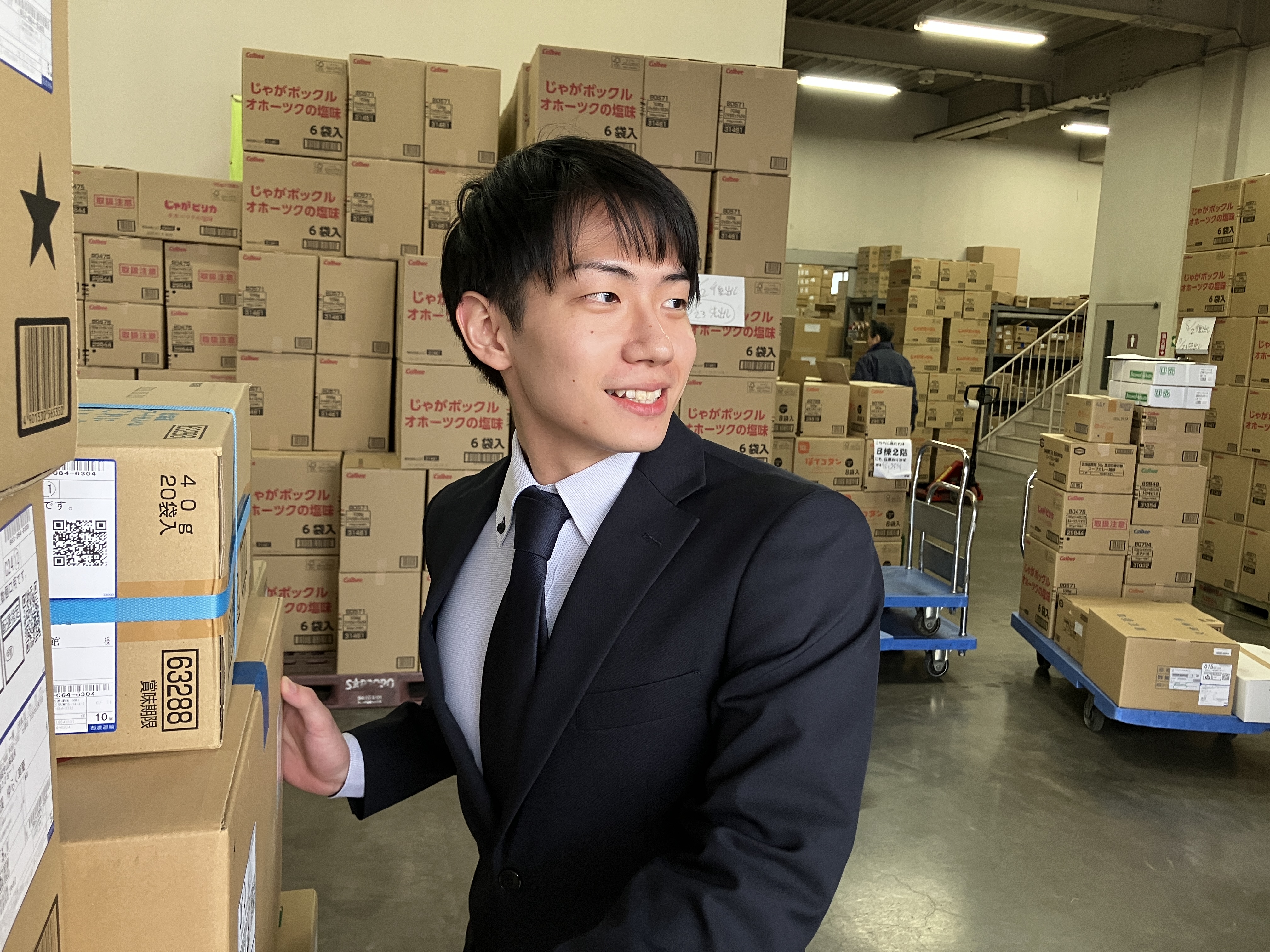 新入社員はまず物流部門で商品知識を身につけ、営業職へとステップアップしていくのが基本の流れ。全国各地のデパートで開催される北海道物産展での仕事もあり、自分が送り出した商品がお客様の手に届く瞬間を体感できるのも、この会社ならではの醍醐味です。