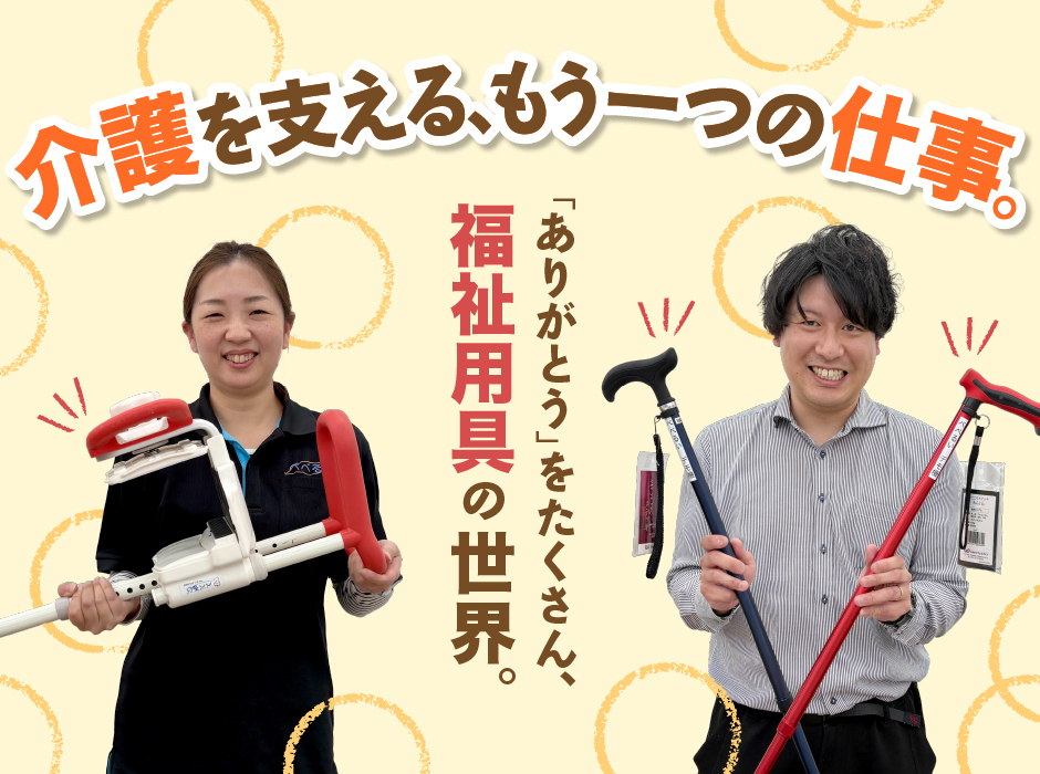 体力的な負担、夜勤のある生活、自分にできるだろうか、と。そんな方に知ってほしいのが、介護の世界を違う角度から支える、福祉用具のレンタル・販売という仕事。ベッド、車椅子、手すり、歩行器、スロープ…