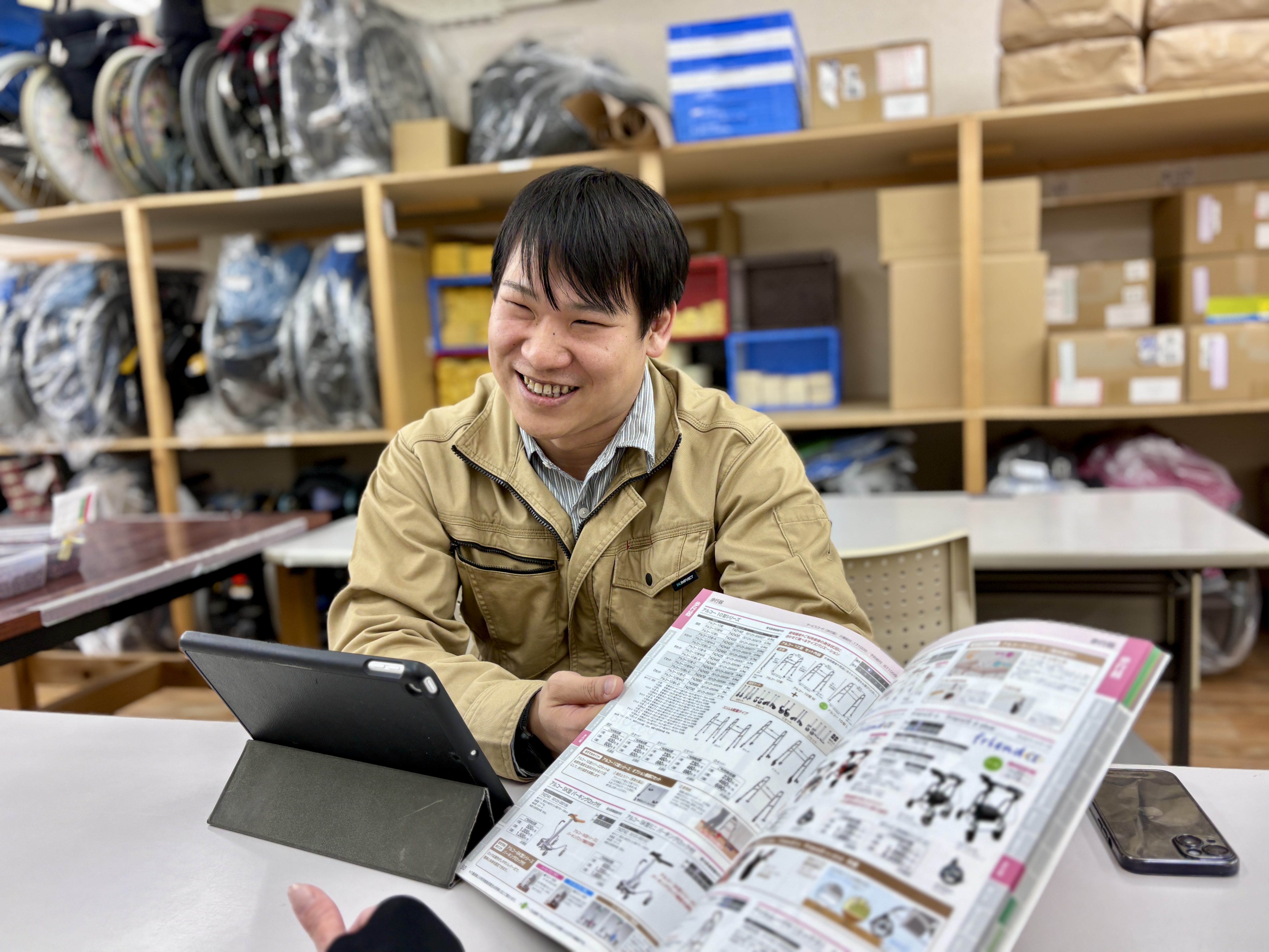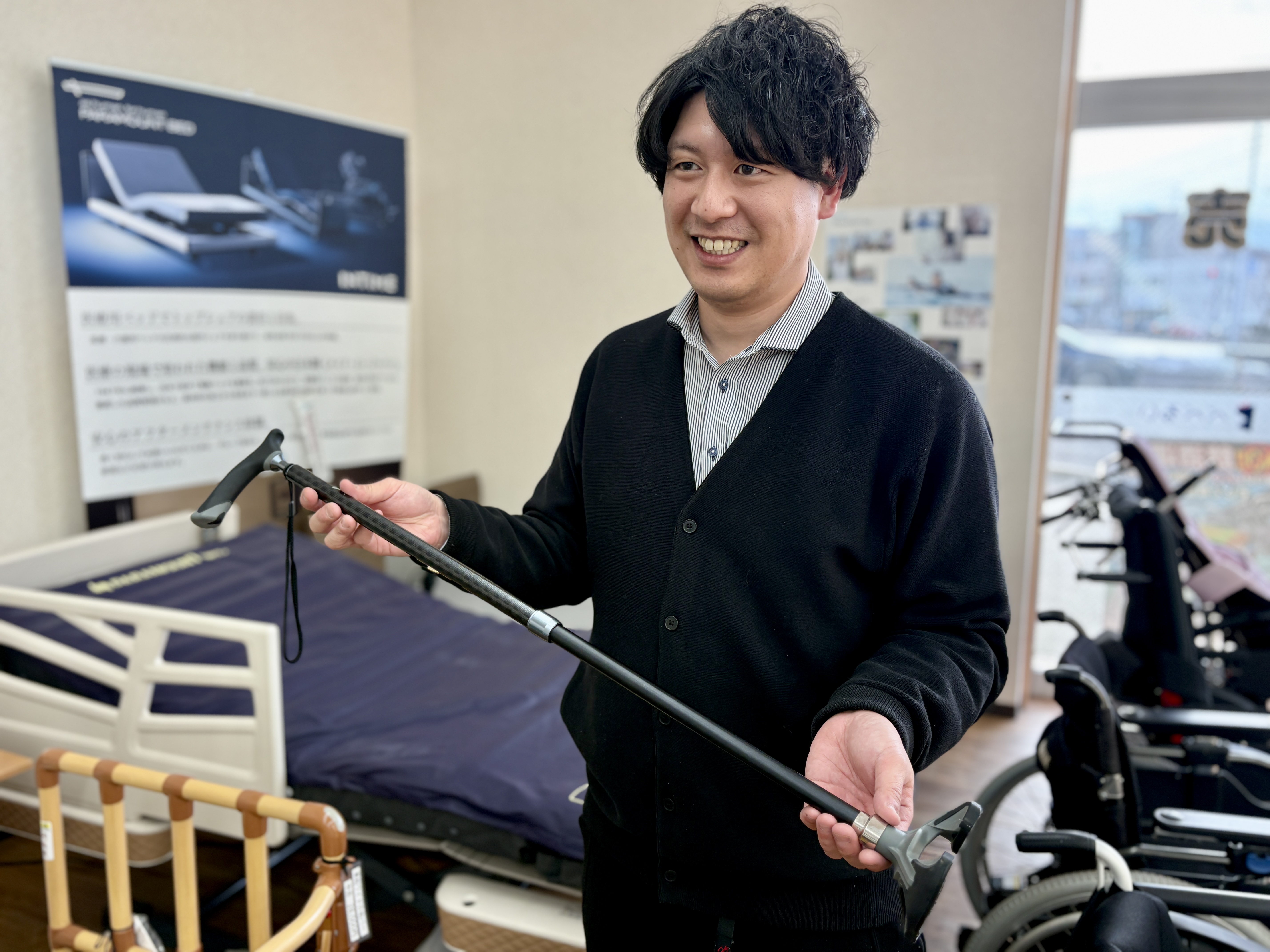 扱う商品は手すり、車椅子、ベッドなど多彩です。ご利用者様の困りごとをしっかり伺う一方、レンタル料を介護保険の「支給限度額」の枠内に収めるなどの工夫をしながら、最適な商品を提供していくのが私たちの役割。以前、手すりを取り付けた時「これで歩くのが楽になる」という声を直接聞いて、すごく嬉しかったです。