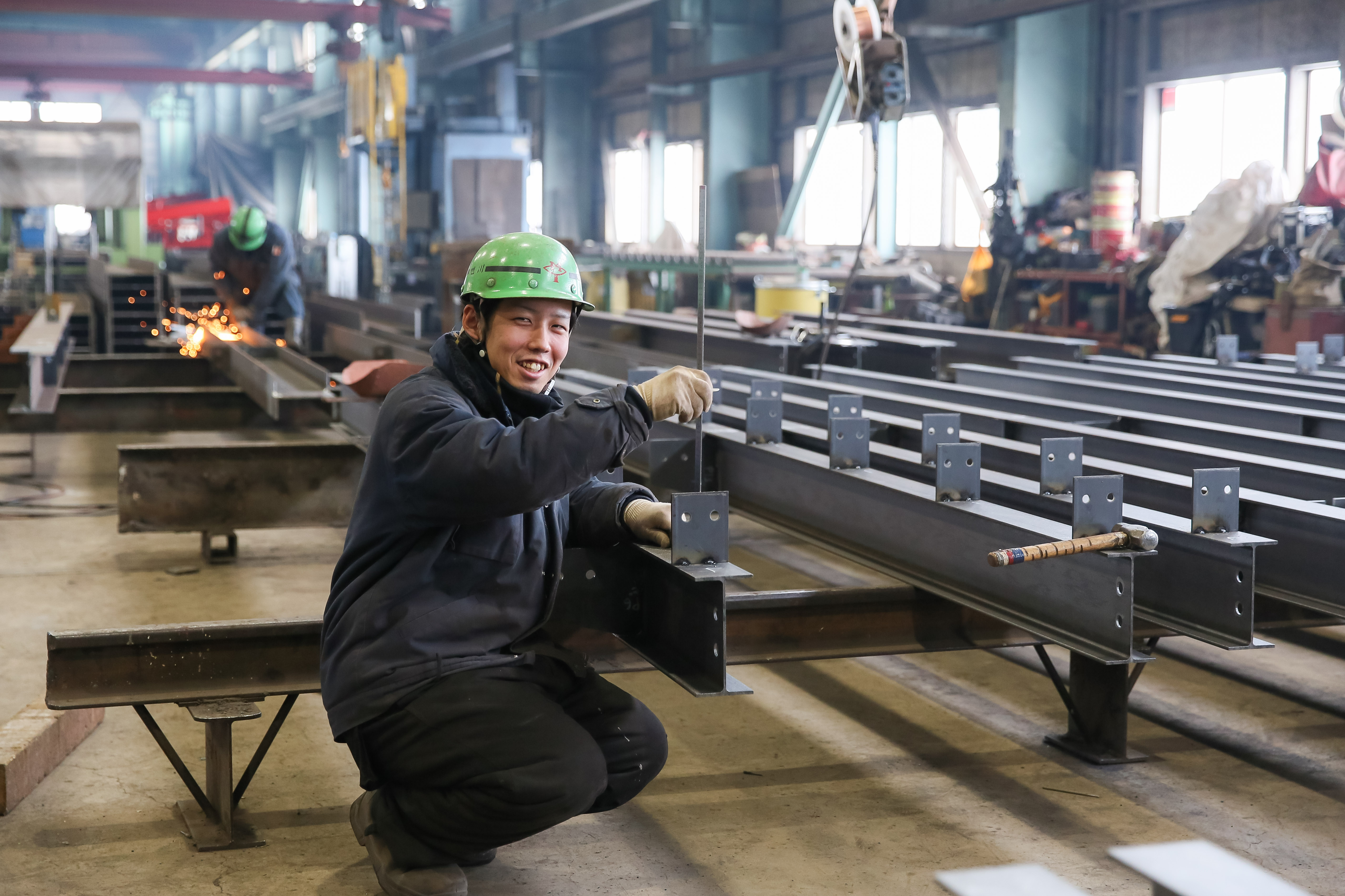 工場には最新の溶接ロボットや大型加工機械を備え、作業の効率化や省力化にも積極的。現在は土日祝日が休みで、残業も少なめの働きやすい環境が整っています。最近は時代に合わせて初任給アップにも取り組みました。
