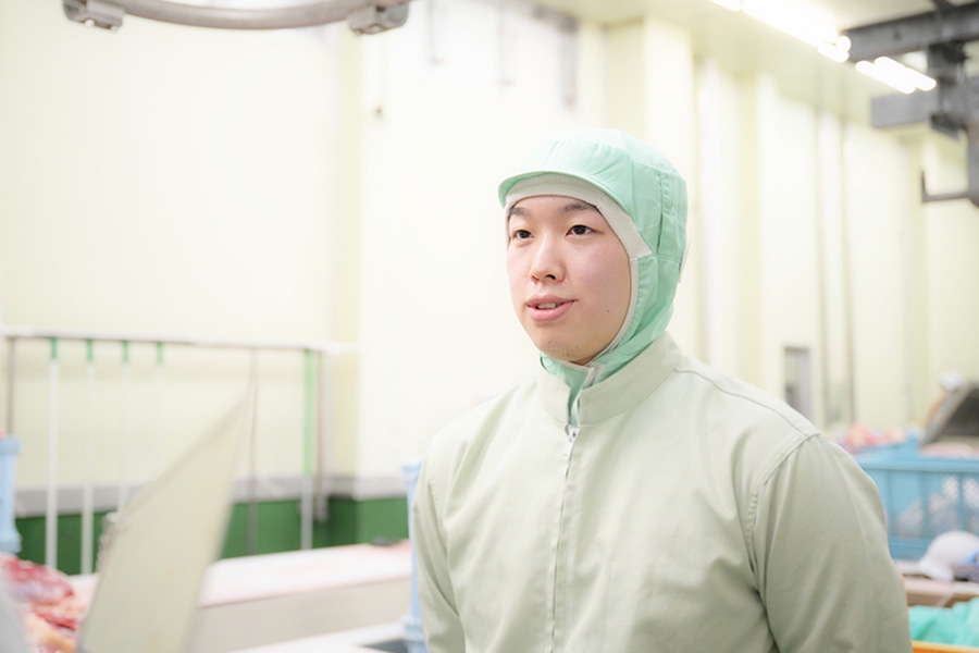 高校生のころ、父の知り合いから十勝清水フードサービスを紹介され、卒業後に就職しました。僕は人と話すのが得意ではなく、好きな作業は黙々と続けられるタイプ。バスケット部ではジャンプやリバウンドに特化して練習していたくらいなので、食品製造に向いていると感じました。