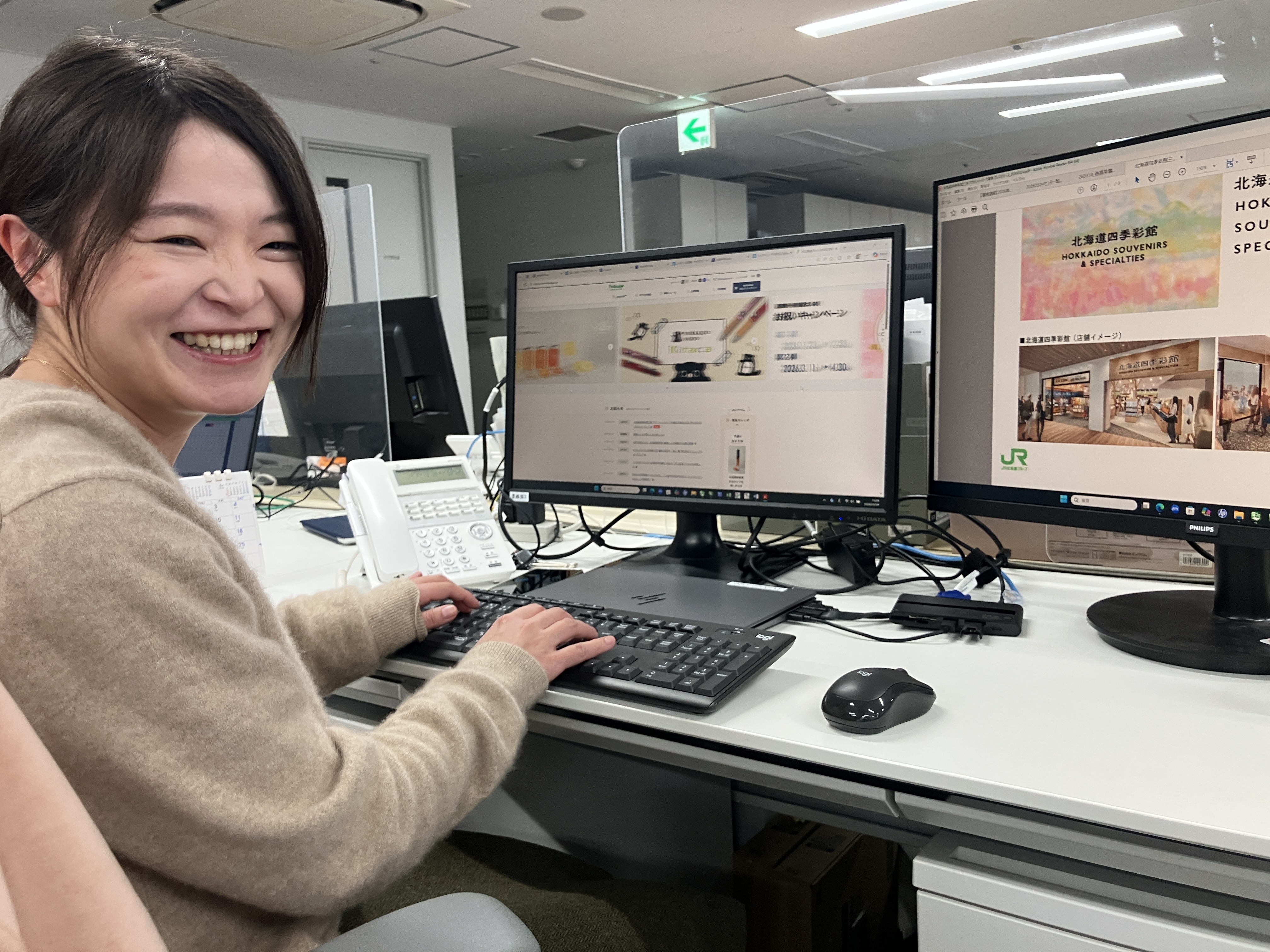 今はお客さまが使いやすく、北海道の思い出の一つになれるような一角をつくるため、各部署やJR東日本とも連携しながら札幌駅エキナカ開発の仕事を進めています。