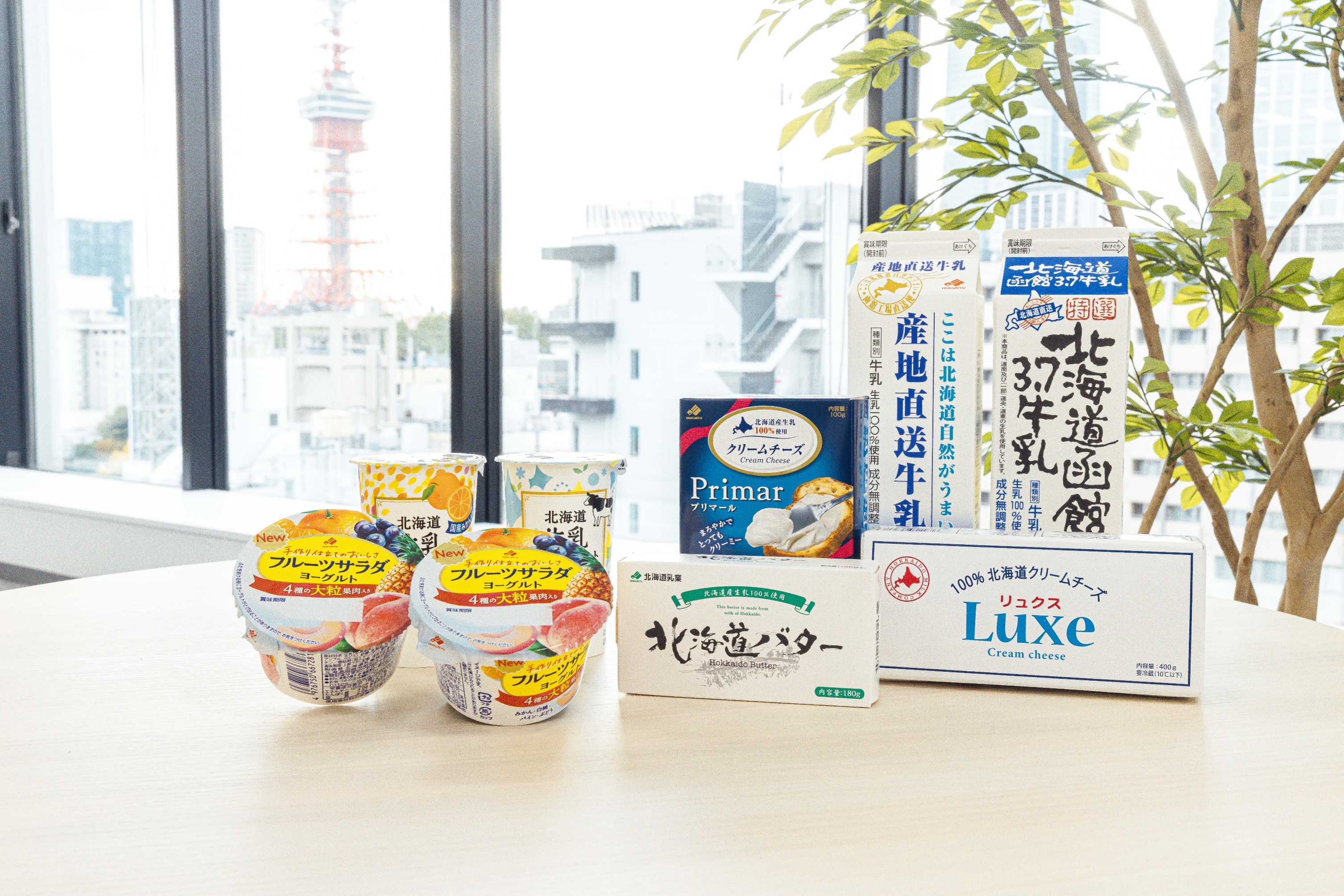 牛乳・れん乳・バター・ヨーグルトなど、北海道産生乳を利用したさまざまな乳製品を作っています。毎年業績は右肩上がり。大手メーカーの飲料や菓子の原料にも使用される練乳のシェアは全国No.1!