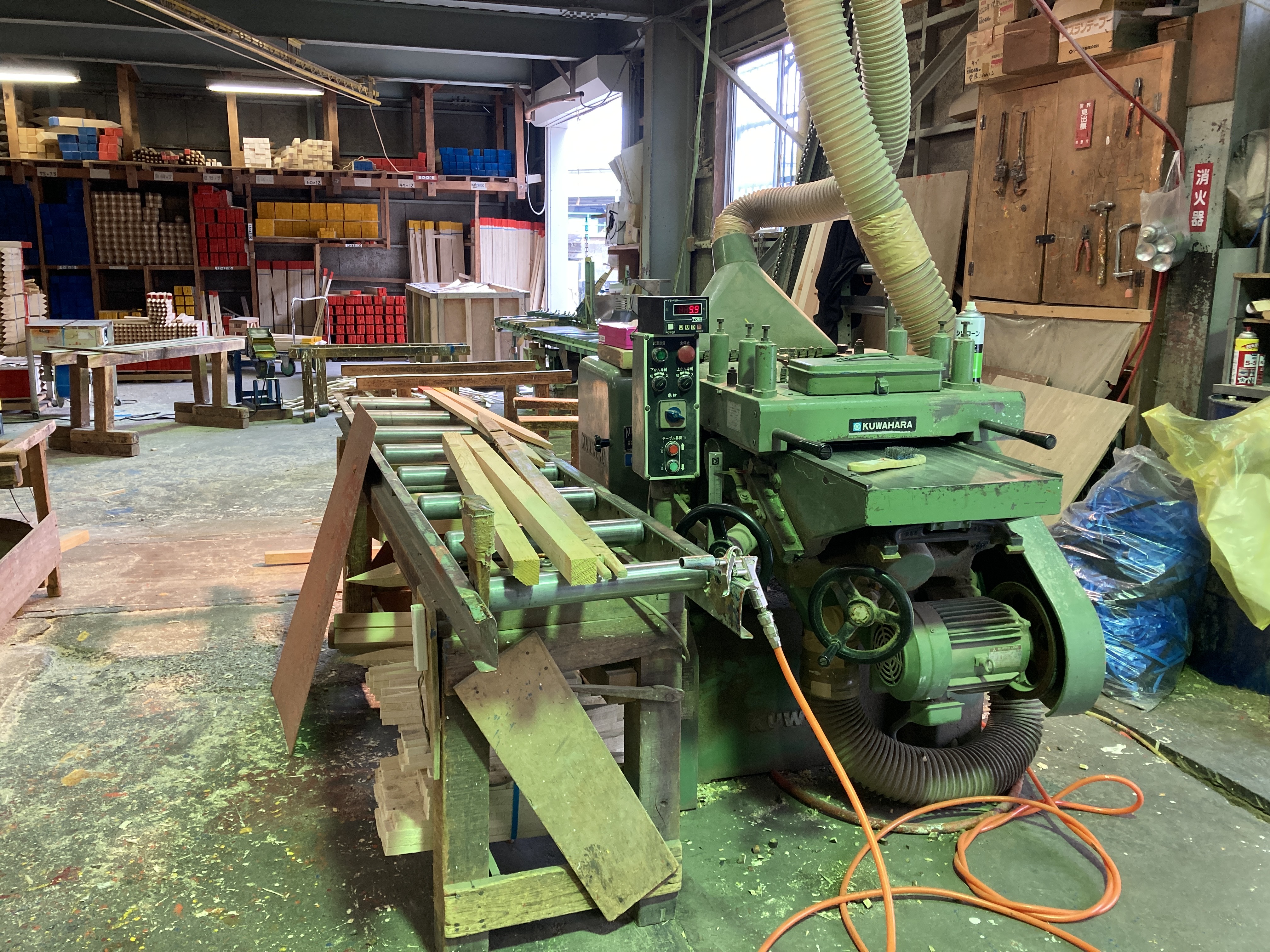 機械を使用したカンナかけ、機械でカット、加工、面取り、ペンキ塗り、梱包が主な仕事の流れです。基本的に工場内でのお仕事です