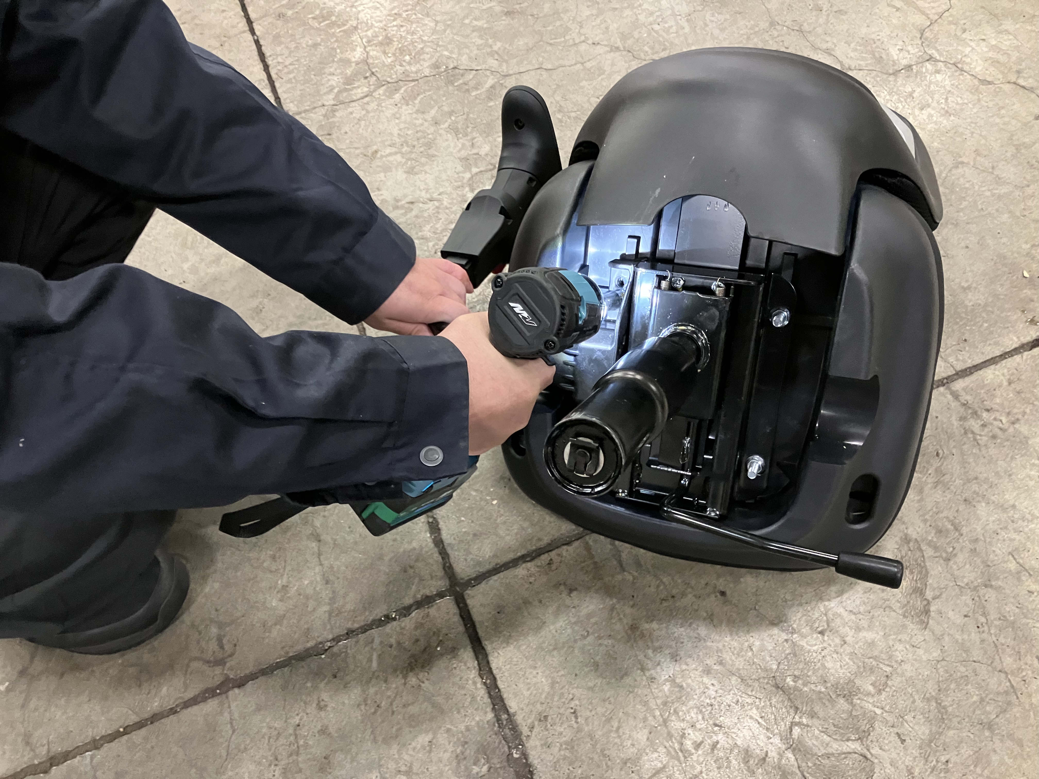 【電動ドライバーを使用した椅子の取り付け作業】